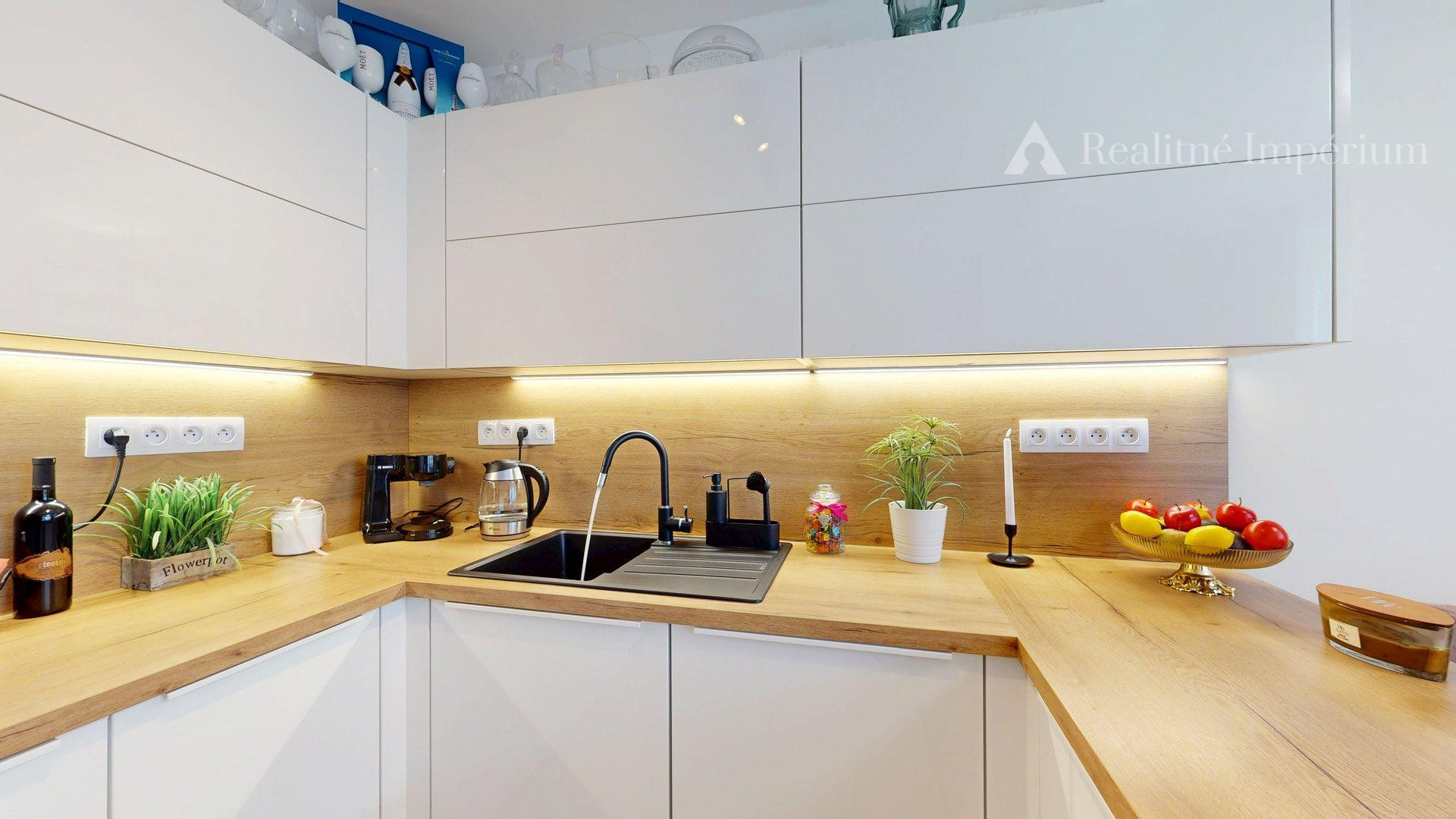- Moderná kuchyňa so vstavanými spotrebičmi vrátane americkej chladničky a umývačky-